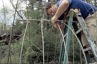 vertical uprights; horizontal binder and diagonal sets of weavers.
